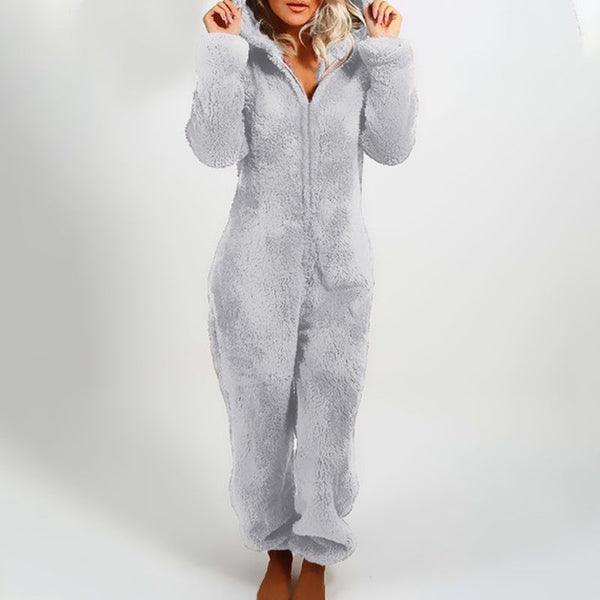 One-piece jumpsuit design provides full-body warmth but still lets you move freely. Curl on the couch, stretch in bed, or make coffee without readjusting layers.