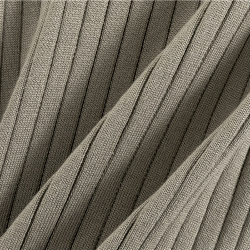 KNITTED STRIPE DESIGN: The sleeveless sweater vest features a knitted vertical stripe pattern, adding a touch of sophistication and breaking the monotony of solid colors. This design detail enhances the overall refinement of the set.